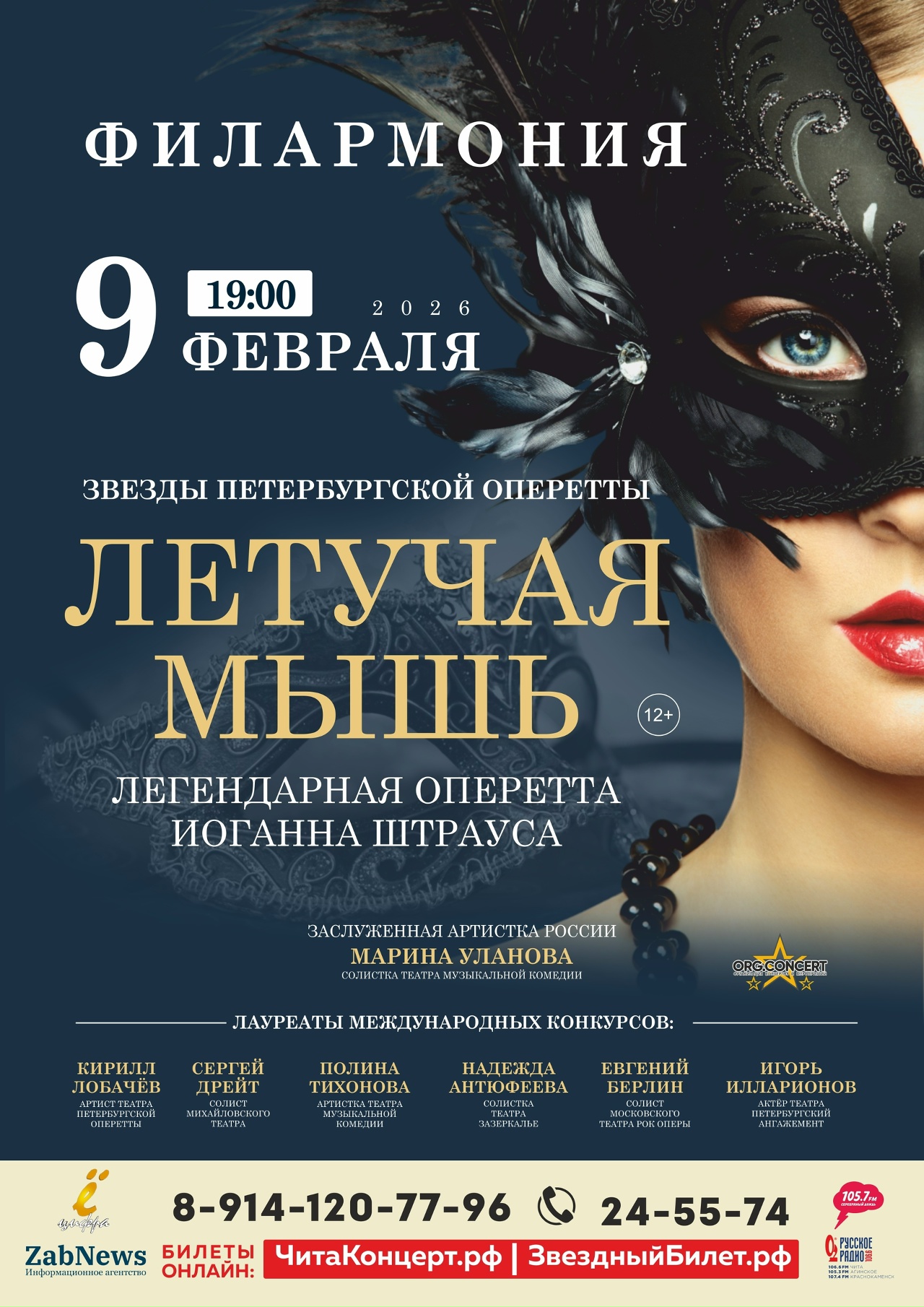 Оперетта «Летучая Мышь» в Чите! 9 февраля в 19:00 на сцене Забайкальской краевой филармонии!